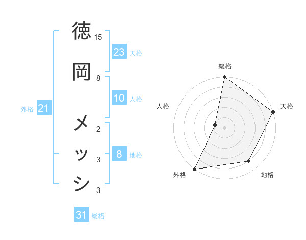 徳岡 メッシさんを姓名の画数から五運を鑑定