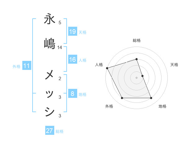 永嶋 メッシさんを姓名の画数から五運を鑑定