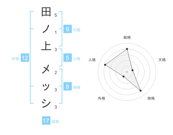 田ノ上 メッシさんを姓名の画数から五運を鑑定