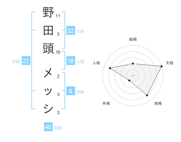 野田頭 メッシさんを姓名の画数から五運を鑑定