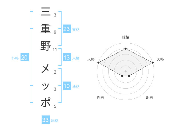 三重野 メッポさんの総格は33画の4点