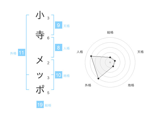 小寺 メッポさんを姓名の画数から五運を鑑定