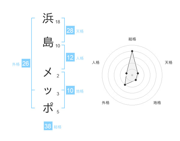 浜島 メッポさんの総格は38画の4点
