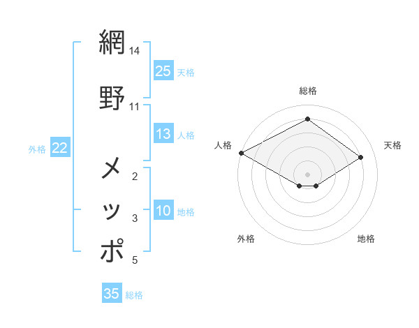 網野 メッポさんの総格は35画の4点