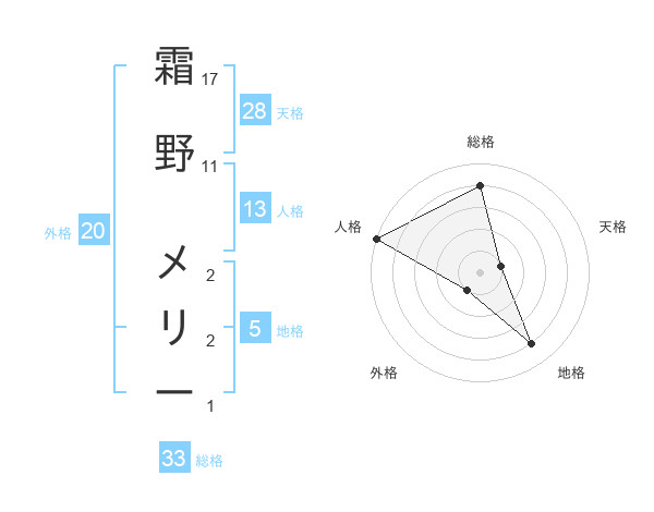 霜野 メリーさんを姓名の画数から五運を鑑定