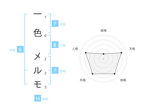 一色 メルモさんの総格は14画の1点