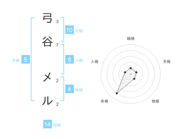 弓谷 メルさんを姓名の画数から五運を鑑定