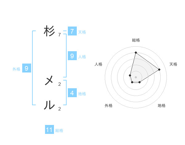 杉 メルさんの総格は11画の4点!