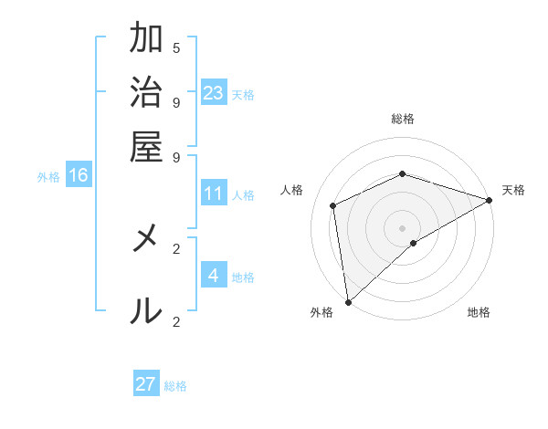 加治屋 メルさんの天格は23画の5点!