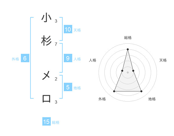 小杉 メロさんの総格は15画の4点!