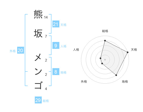 熊坂 メンゴさんを姓名の画数から五運を鑑定