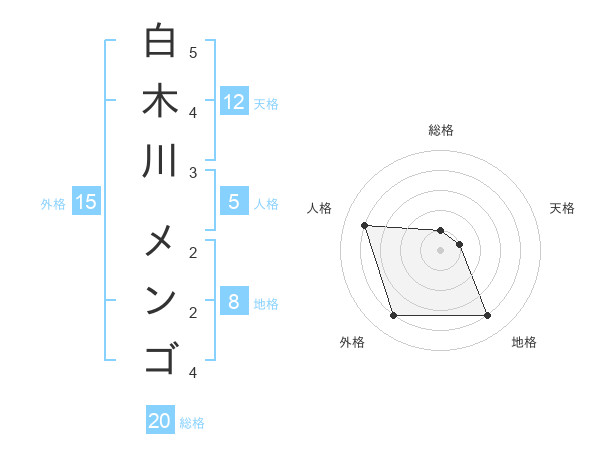 白木川 メンゴさんの総格は20画の1点