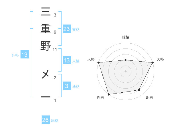 本サイトの鑑定結果の正当性は保証しません。鑑定結果は参考程度にお読みください。実際の名づけにご利用される場合は、姓名判断についてご自身でよくお調べください。