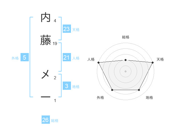 内藤 メーさんの天格は23画の5点!