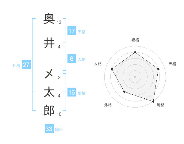 奥井 メ太郎さんを姓名の画数から五運を鑑定