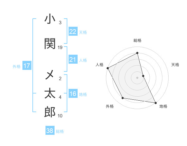 小関 メ太郎さんを姓名の画数から五運を鑑定