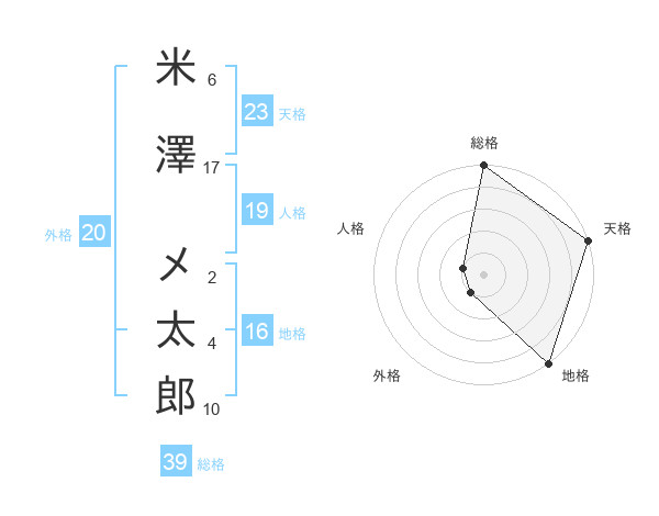 米澤 メ太郎さんの天格は23画の5点!