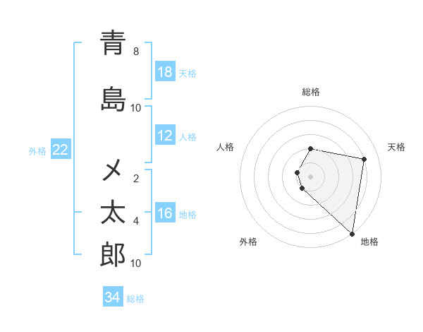 青島 メ太郎さんを姓名の画数から五運を鑑定