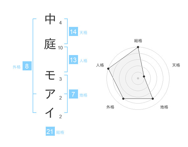 中庭 モアイさんを姓名の画数から五運を鑑定