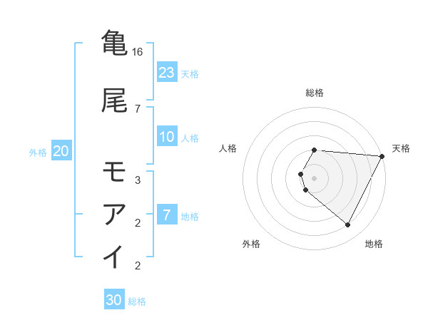 亀尾 モアイさんを姓名の画数から五運を鑑定