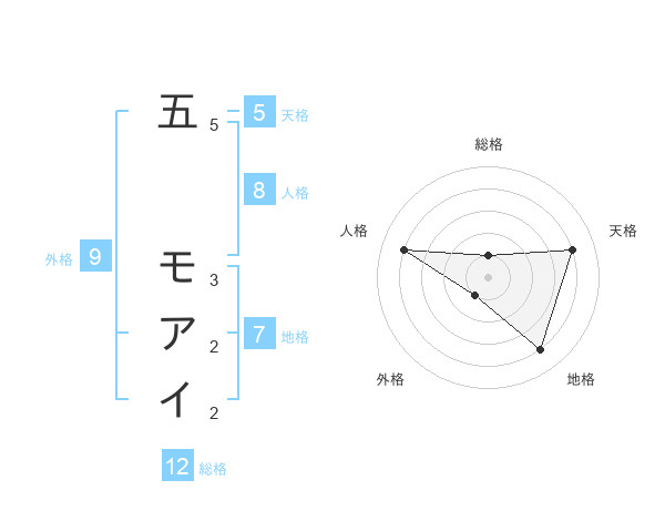 五 モアイさんの総格は12画の1点!