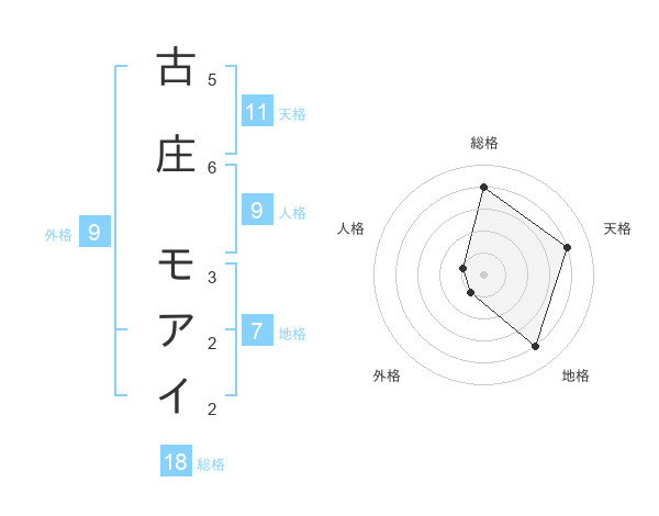 古庄 モアイさんの総格は18画の4点!