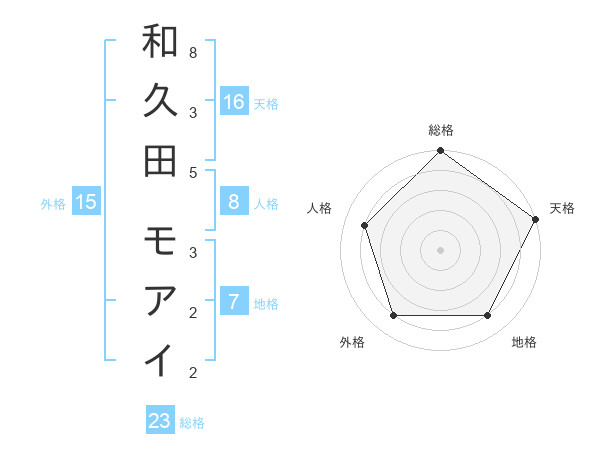 和久田 モアイさんを姓名の画数から五運を鑑定