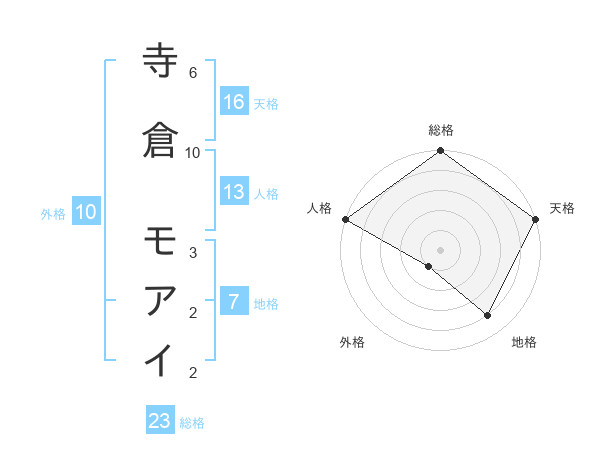 寺倉 モアイさんを姓名の画数から五運を鑑定