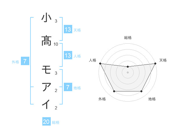 小髙 モアイさんを姓名の画数から五運を鑑定