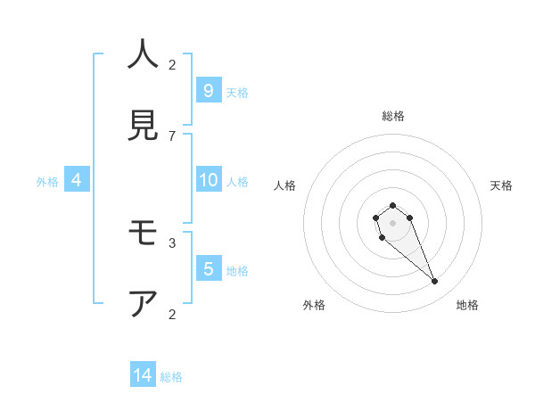 人見 モアさんの地格は5画の4点!