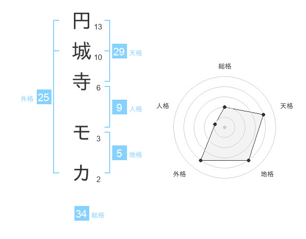 円城寺 モカさんの天格は29画の4点!