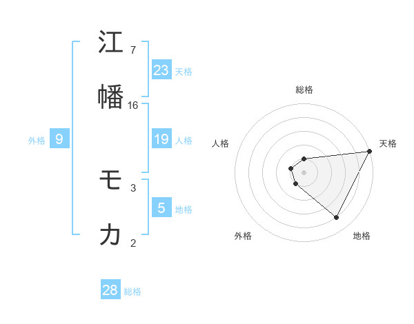 江幡 モカさんの天格は23画の5点!