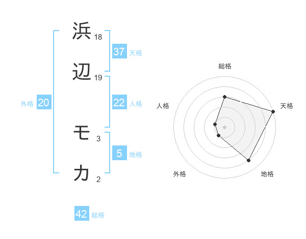 浜辺 モカさんを姓名の画数から五運を鑑定