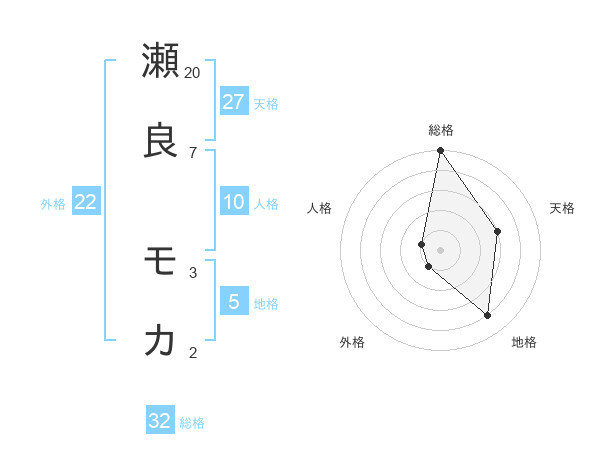 瀬良 モカさんの総格は32画の5点!