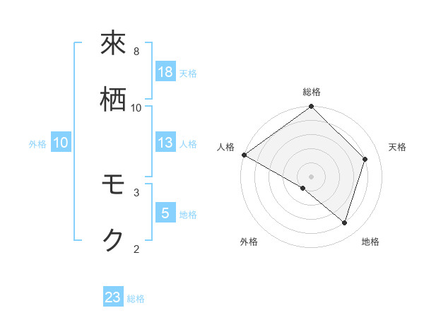 來栖 モクさんの総格は23画の5点!