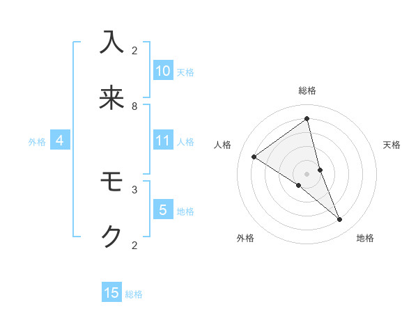 入来 モクさんの総格は15画の4点!