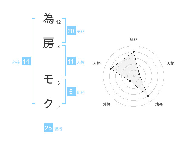 為房 モクさんの総格は25画の4点!
