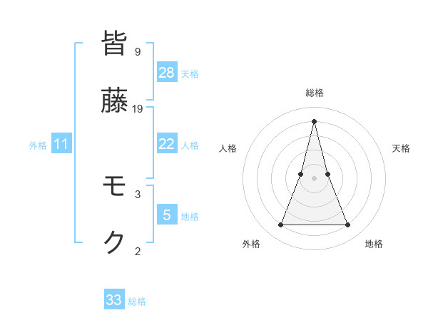 皆藤 モクさんの総格は33画の4点!