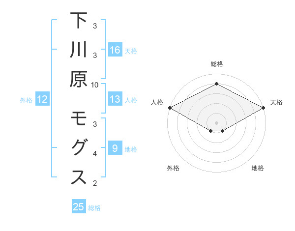 下川原 モグスさんを姓名の画数から五運を鑑定