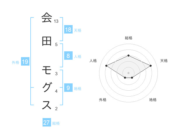会田 モグスさんの天格は18画の4点!