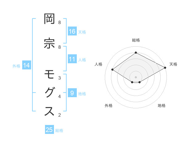 岡宗 モグスさんの総格は25画の4点!