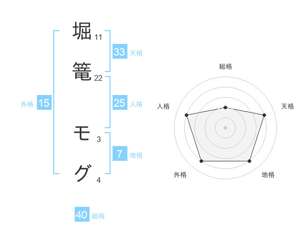 堀篭 モグさんを姓名の画数から五運を鑑定