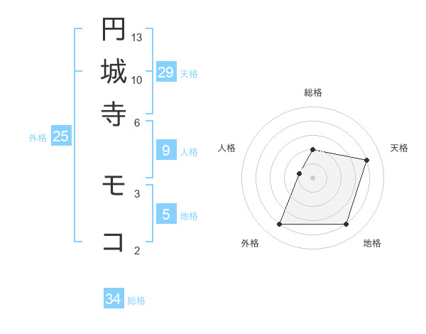 円城寺 モコさんを姓名の画数から五運を鑑定