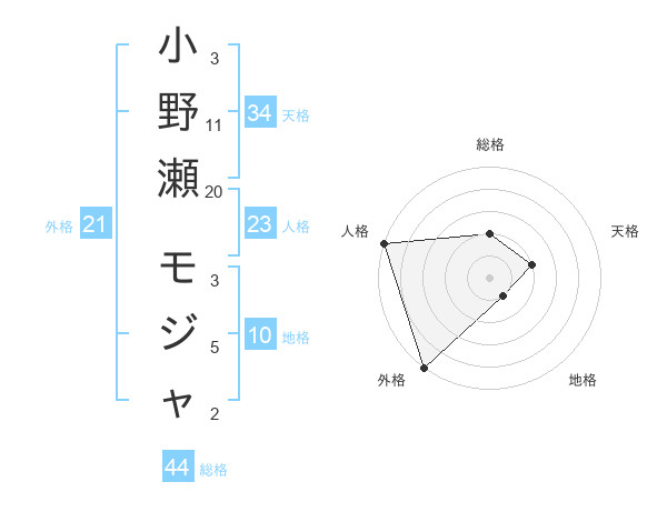 小野瀬 モジャさんを姓名の画数から五運を鑑定