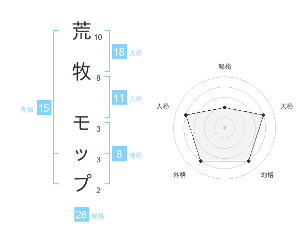 荒牧 モップさんを姓名の画数から五運を鑑定