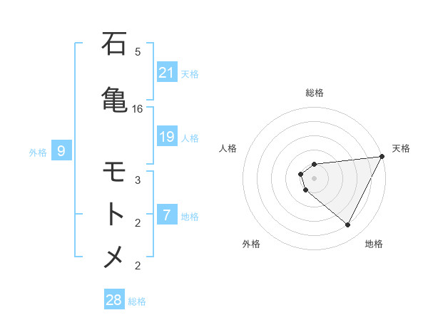 石亀 モトメさんの天格は21画の5点!
