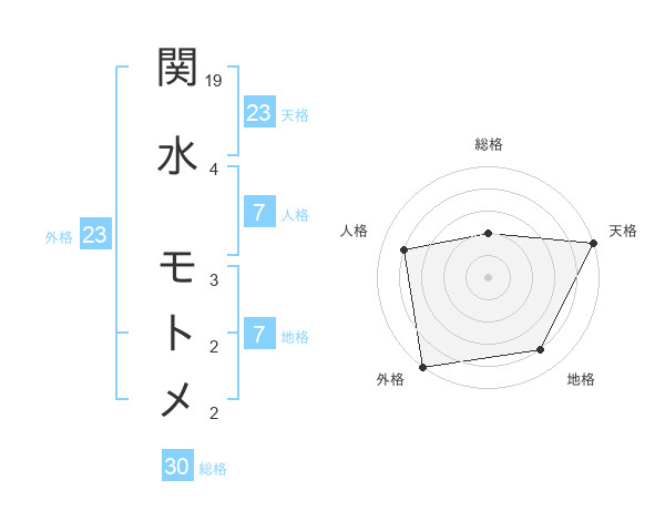 関水 モトメさんの天格は23画の5点!