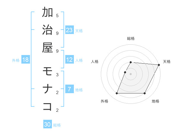 加治屋 モナコさんの天格は23画の5点!