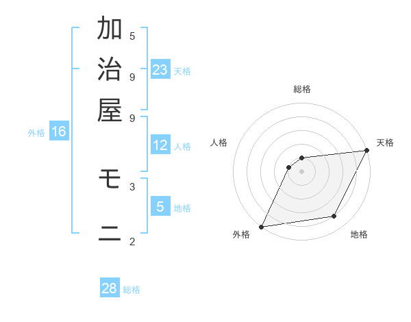 加治屋 モニさんを姓名の画数から五運を鑑定