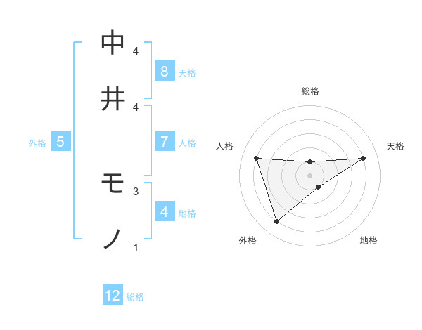 中井 モノさんの天格は8画の4点!